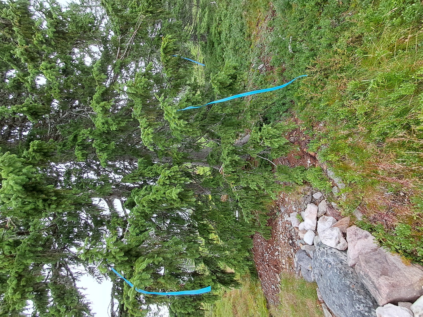 Det er dessuten viktig at trærne merkes på riktig måte. Merkebåndet skal festes langt ut på en grein, ca 2m over bakken. Dette for at merkene skal være synlige selv med mye snø til vinteren. Denne merkingen må være utført før 15.sept 2025.