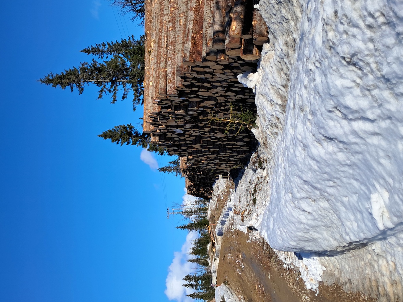 Tømmervelter er ustabile, og tømmerstokkene kan rulle uventet - f.eks ved at snøen tømmeret ligger på gir etter. Tømmerstokkene er store og tunge, og utgjør en risiko for alvorlige klemskader. Så hold avstand - ingen klatring eller lek på tømmerveltene!